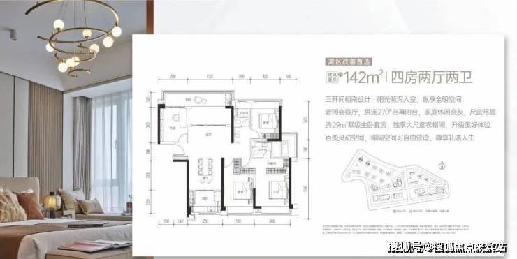 三开间朝南 | 270度巨幕阳台 | 约29㎡墅级主卧套房 | 稀阔空间