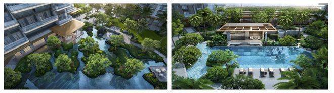 2.5容积率低密社区:汲取虹夕诺雅设计灵感,匠心打造“一带两芯八境”艺术度假园林,酒店式大堂、度假泳池、高阶泛会所等,将酒店私享与生活浪漫相融。