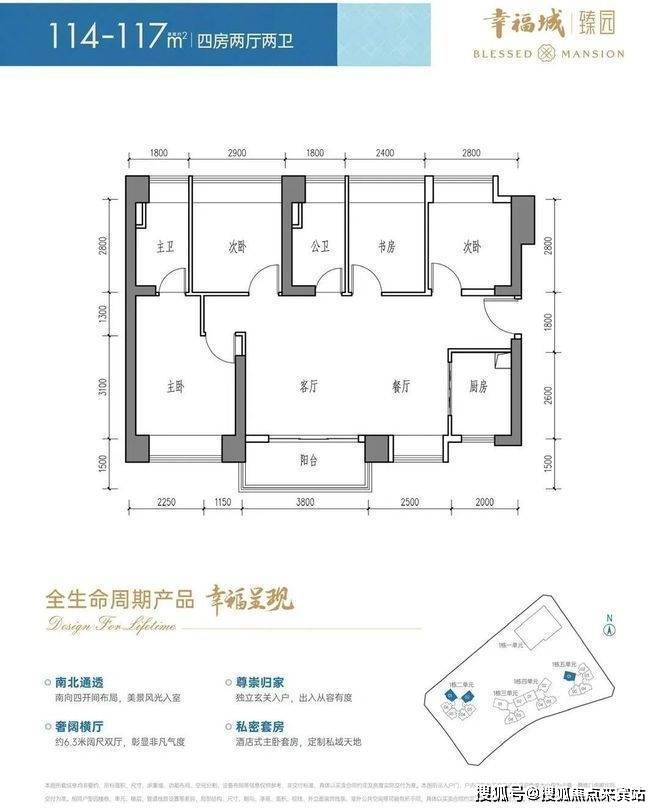 114-118㎡四房两厅两卫(横厅/竖厅):约280套,占比32%