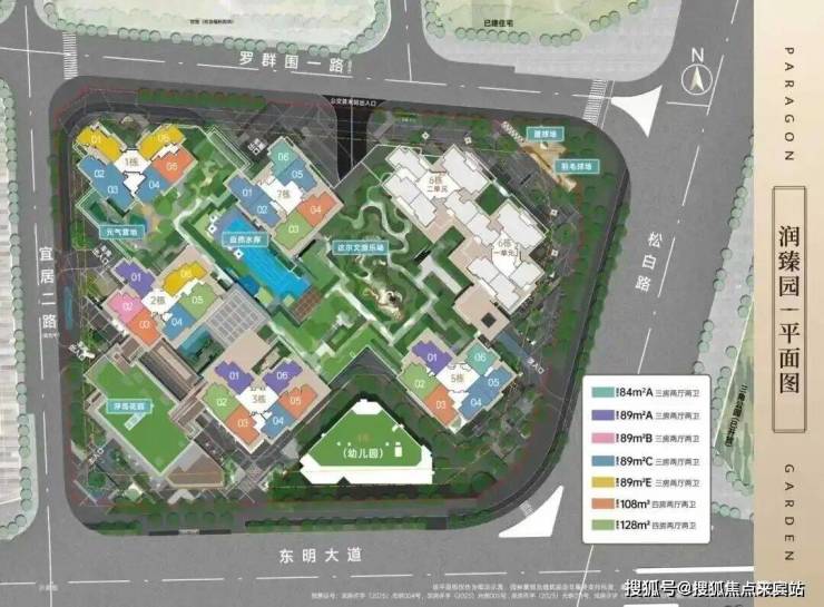 共由7栋总高27-57层高的住宅组成,总规划1836套,全部是商品房,内置有公交首末站,文化活动室等公共配套;地下室有3层,规划停车位2062个,车位占比约1:12。