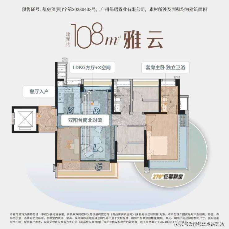 108㎡的户型做南北通透大四房,加上LDKG+X一体化设计以及双阳台。