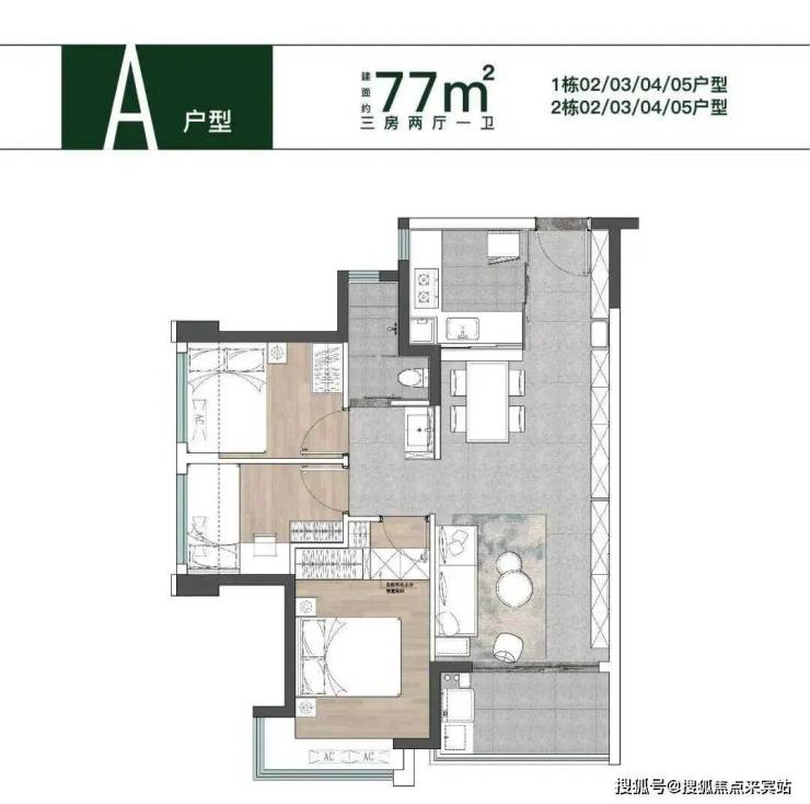 建面约77㎡ 3房