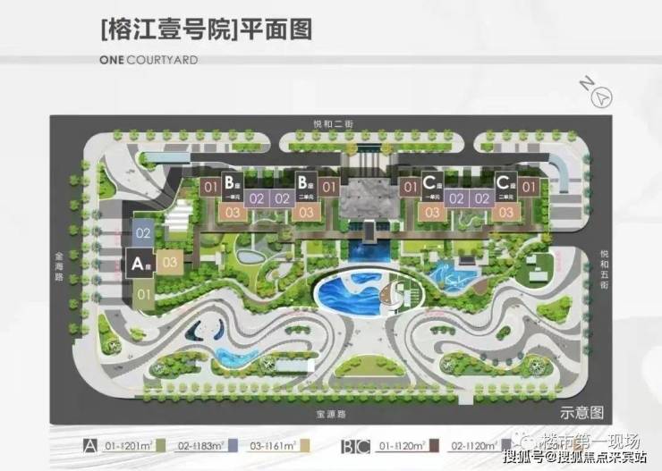 住宅梯户:A座3梯3户;B/C座2梯3户