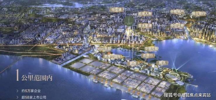 项目周边:项目1公里范围内约5万家高新企业,58家上市公司,腾讯、前海人寿、VIVO总部等名企林立,资产超10亿企业约25家