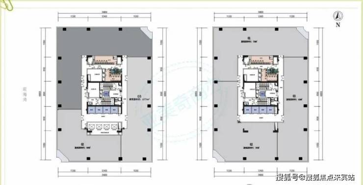 公共功能区域:每层预留2个卫生间、1个茶水间及1个清洁间