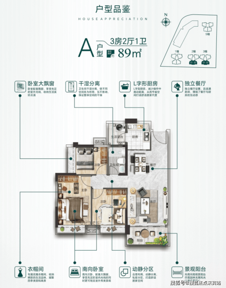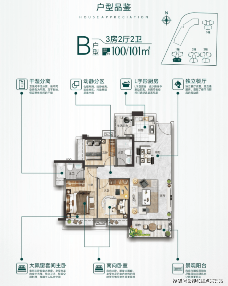 【 楼栋结构 】共5栋,1/2/3/5栋住宅,21层;4栋为商业
