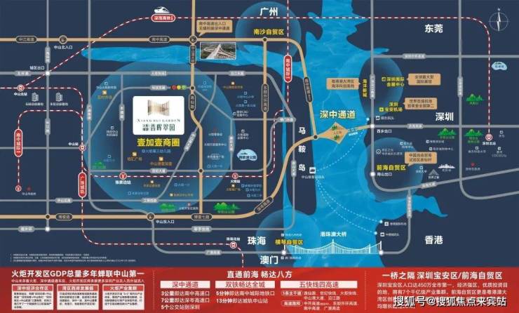 【深中通道】3公里即达南中高速口,7公里经逸仙路转博爱路即达深岑高速口,3个公交站可到马鞍岛,5个公交站到深圳,比其它楼盘更快到达深圳。而且这里对比火炬老城区通勤更加便利,未来这里必然成为深圳客置业首选之地!