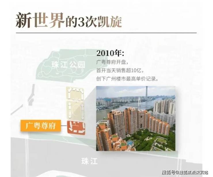 2010年,凯旋新世界广粤尊府首开,当天销售超10亿,一举创下广州楼市的最高单价纪录。也正是这一年,广州楼价达到历史巅峰,涨幅为38%。