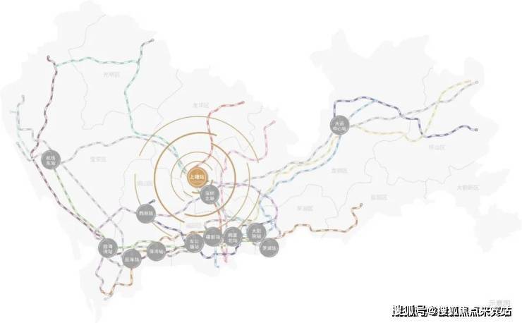 ②深圳都会枢纽的1/13 ,三地铁线交汇(含在建)