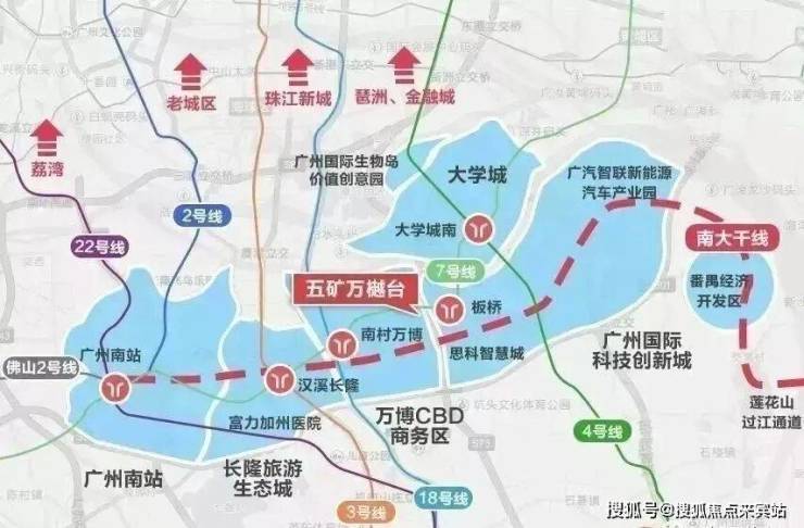 作为大湾区创新腹地,万博CBD坐拥粤港澳大湾区的流量出入口——广州南站,依托得天独厚的地理位置、优越的营商环境、交通便利、人口红利、创新发展等优势,万博CBD的区位价值剑指珠江新城。