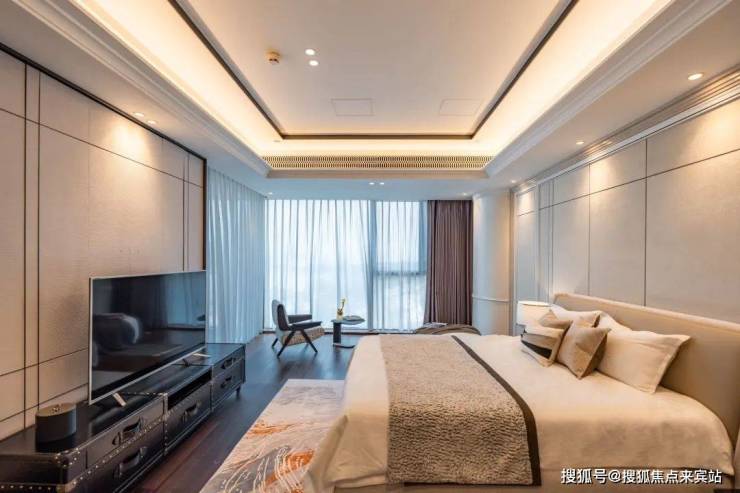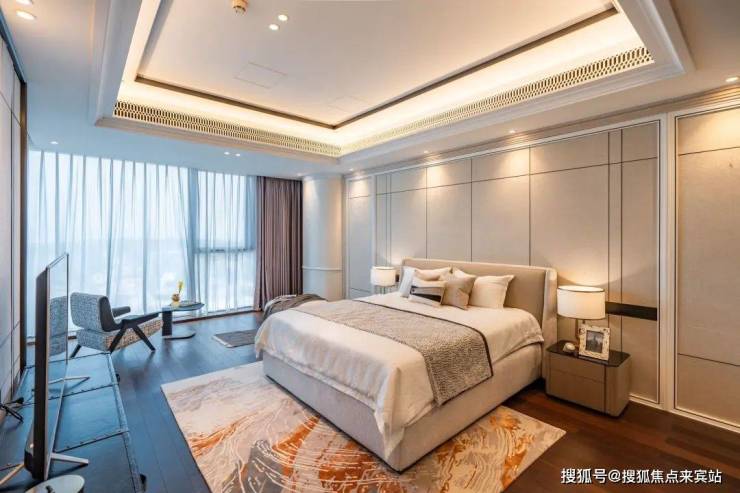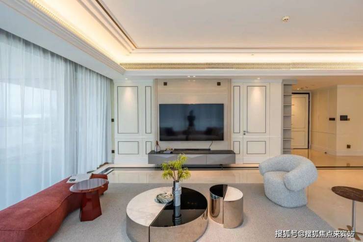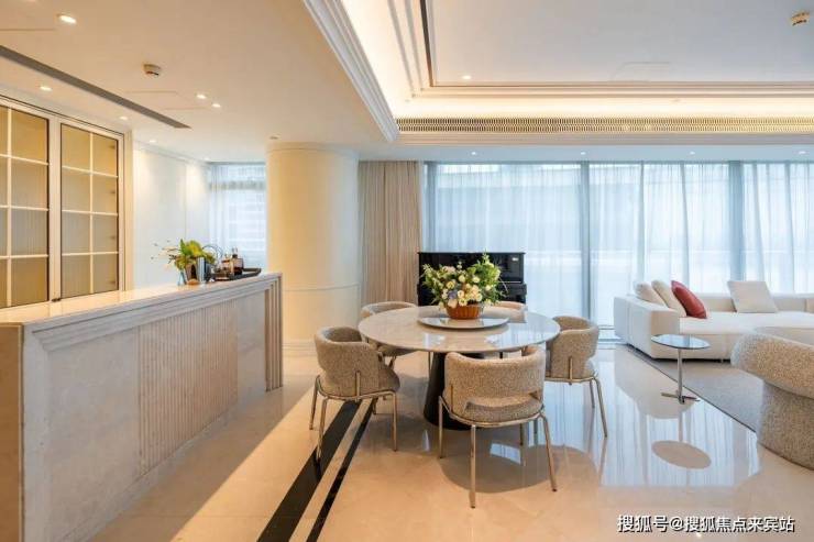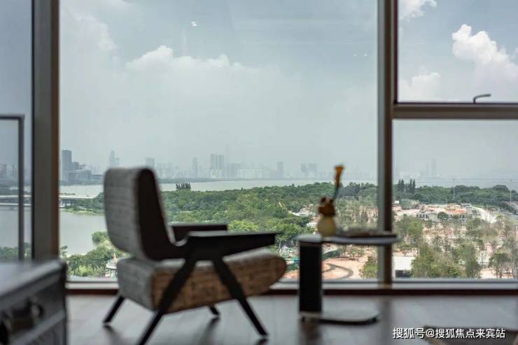 80平餐客厅,厅出50平大阳台,3.3米极限层高,透过270度无遮挡景观面,感一座城市的春夏秋冬