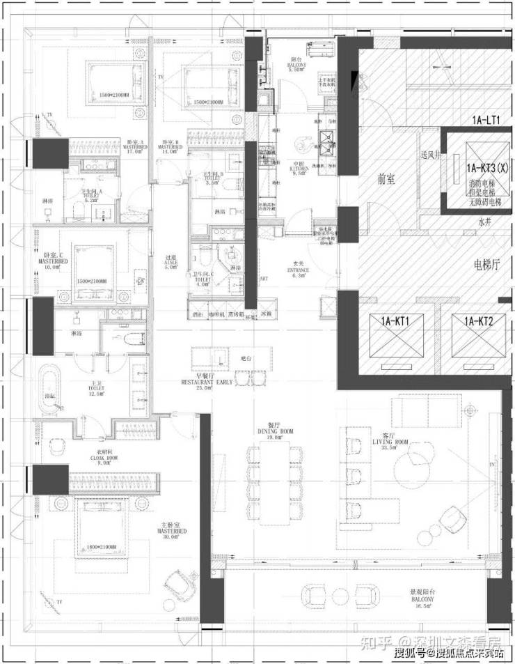 345平4房4卫,3梯2户,主卧52㎡,餐客厅75㎡,景观阳台16㎡。