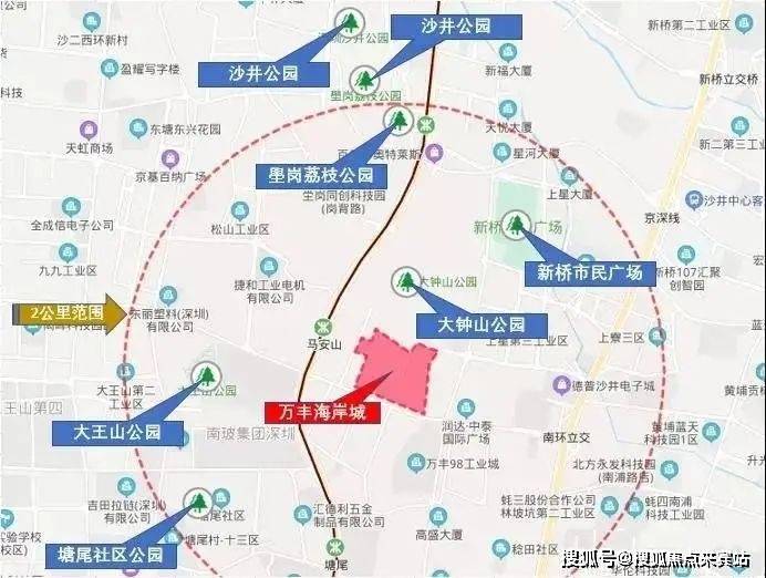 整个万丰海岸城商业建面约143880㎡,建成后将会成为片区内规模可观的商业中心。1.3公里内还有万新商业广场(238米)、天虹商场(1.1公里)、形色城购物中心(1.4公里)。稍远点还有西荟城购物广场(2.3公里)、京基百纳广场(2.4公里)。几百米外的博林君瑞自带2.1万㎡商业。
