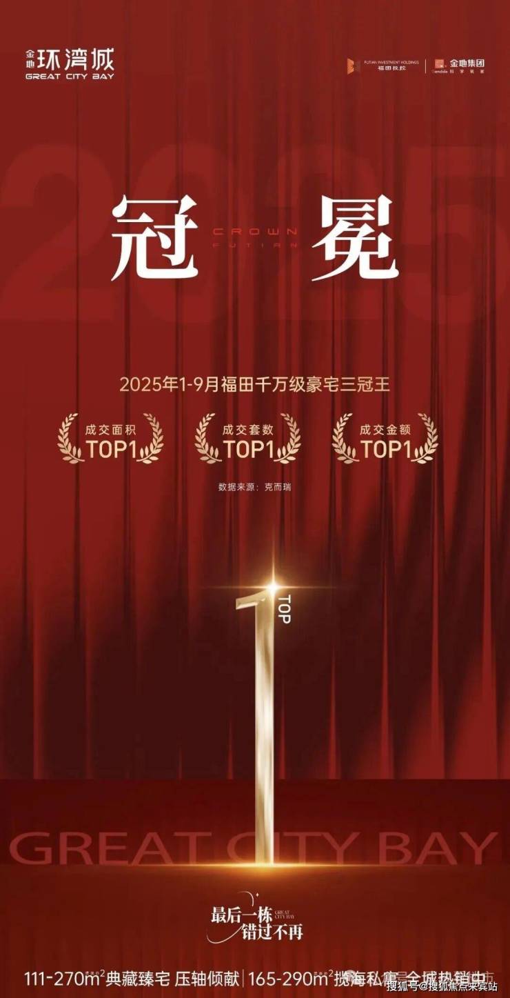而且,据深圳克而瑞的统计数据,金地环湾城取得2025年1-9月福田千万级豪宅成交套数、面积、金额三冠王。项目的热销并非阶段性脉冲,而是持续领跑市场。