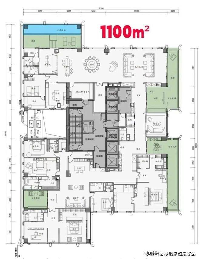 顶楼:约1050㎡整层大平层(仅3套)。