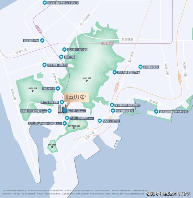 不远处还有九年一贯制学校(规划中)、深大附中高中部、北师大南山附校高中新校区(即市第三十高级中学,建设中)。