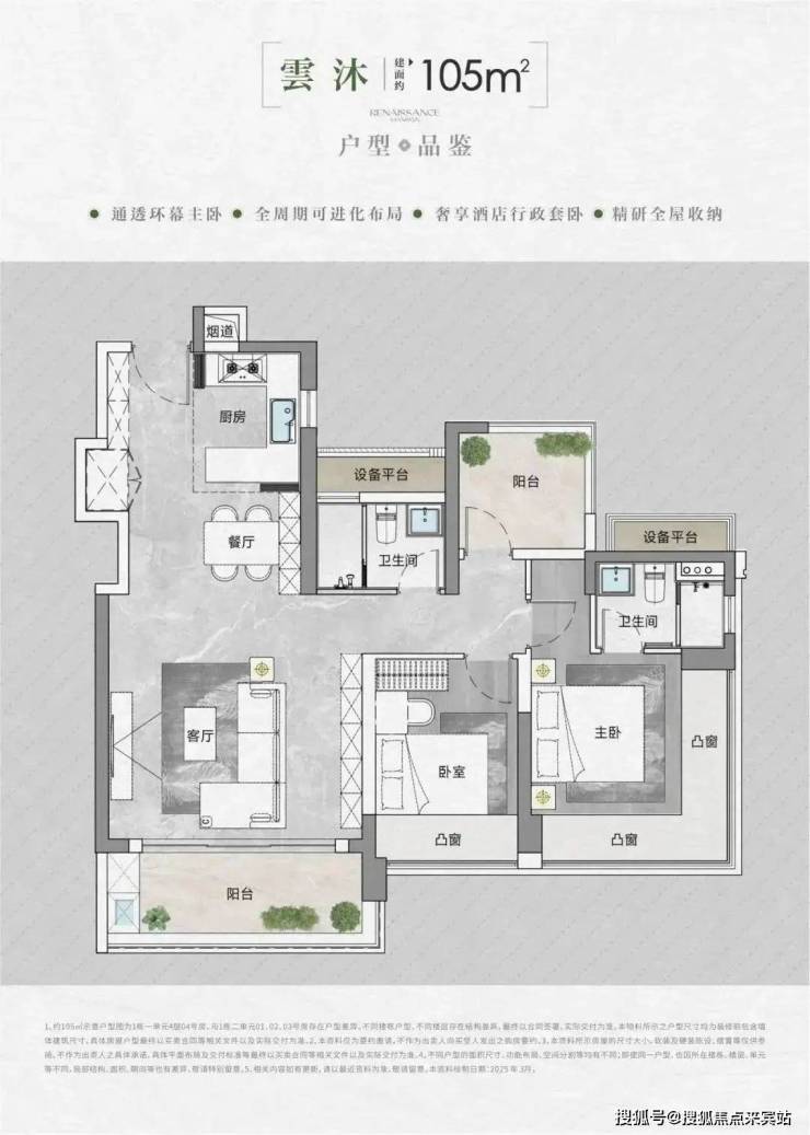 • 得房率:通过创新性的飘窗、双阳台改造、设备平台赠送等设计,实现平均94-96%的惊人得房率。