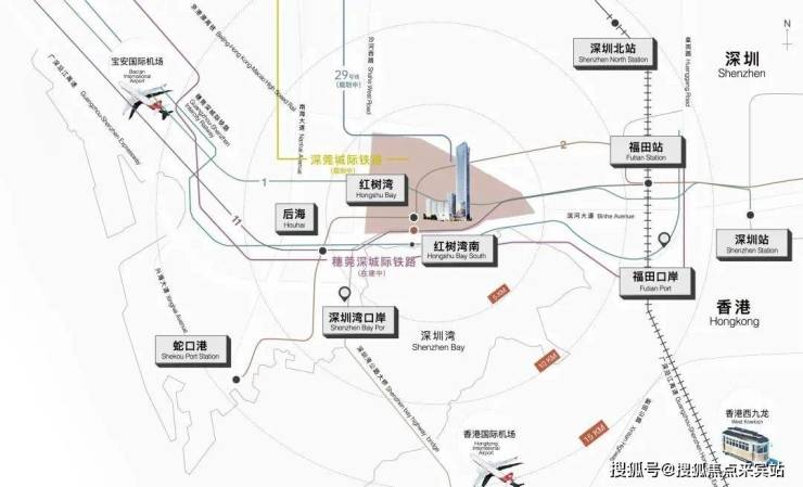 通达的一平方公里湾区复合枢纽 海陆空一站接驳深圳一个无需换乘,即可轨道直达五大出境口岸的超级枢纽,海陆空立体通达,链接全球,地下交通层可以直接办理值机六轨六站交汇 擎画往来效率“六轨六站”立体交通。2/9/11/29号线(规划中),畅达全市核心领域;穗莞深城际(在建中)、深莞城际(规划中),通联大湾区经济主脉