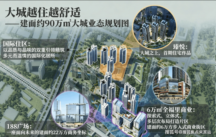 集商务办公、潮流商业、国际住区于一体的建面约90万方超级综合体