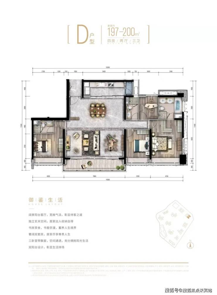 比如,建面约170—172㎡的3+1房,空间尺度非常阔绰!四开间朝阳,卧室分布在两端,中间带一个开间达7.3米的观景阳台,视野广阔;即便是三代同堂,也能做到互不干扰,生活舒适。