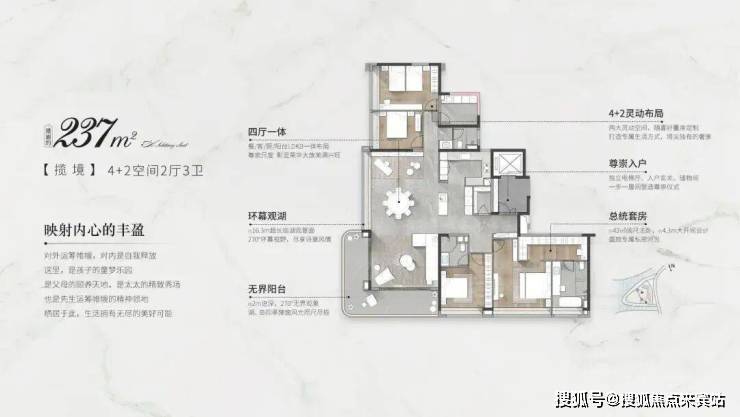 户型:建面约85-227㎡三至四房,180㎡4房2厅3卫&237㎡4+2空间2厅3卫