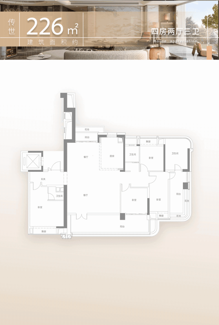 首开户型:建筑面积约128㎡ -173㎡-226㎡