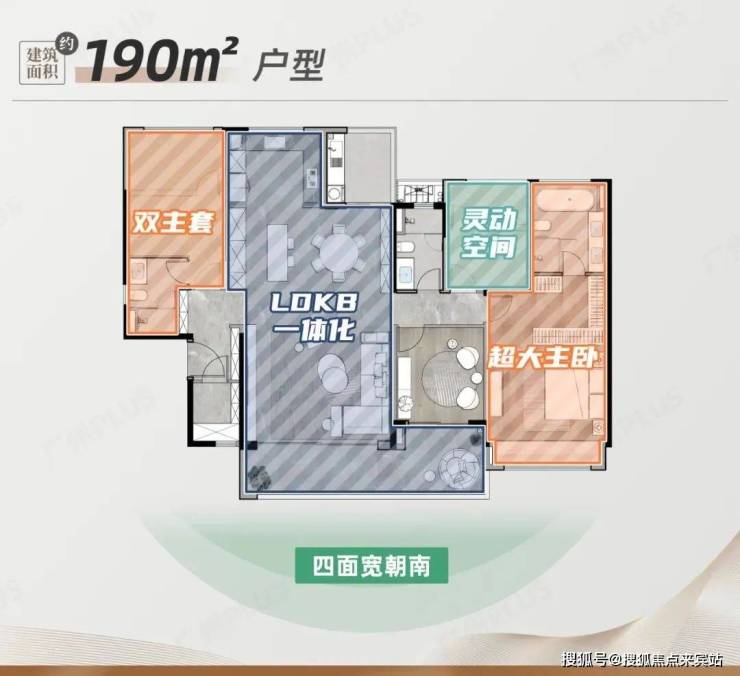 190㎡户型南北对流双阳台,南看2万方花园绿洲,北望珠江新城CBD,这就是触手可及的豪宅“天花板”该户型设有入户玄关和储物间,通过将客厅、餐厅、厨房和阳台一体化设计,LDKG布局创造了一个开放、共享的生活空间,使家庭成员可以更容易地聚集在一起,享受家庭时光。
