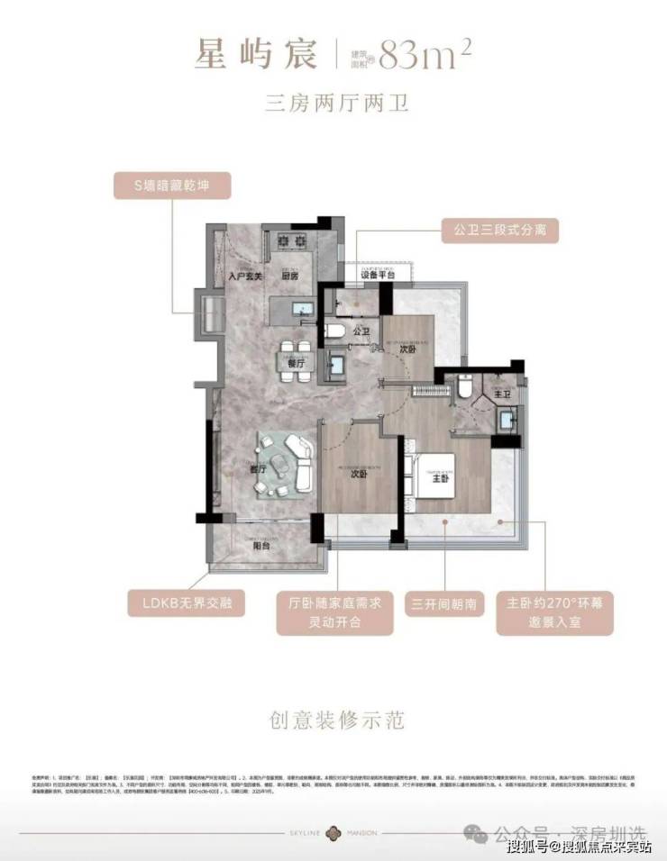 建面约83-133㎡3-4房宸式美学新著,LDKB巨幕方厅,跑道式景观阳台,小家化星级酒店主卧套房,270°环幕全景舱,客厅次卧无剪力墙灵动设计,实现超高实用率,每一户皆是颐安“超新一代作品”的匠心宣言。