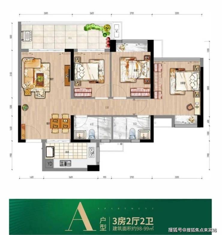 121㎡联排W户型 大面宽,阳台景观无限!