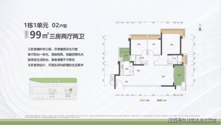 户型面积布局0299平三房两厅两卫设计的是竖厅格局,客厅3.5米开间,LDKB一体化设计,进深11.31米,动静分区,三卧室朝东北向看科学公园,二字型厨房还带1个生活阳台,公卫三段式分离,阳台1.5米进深,东南朝向。