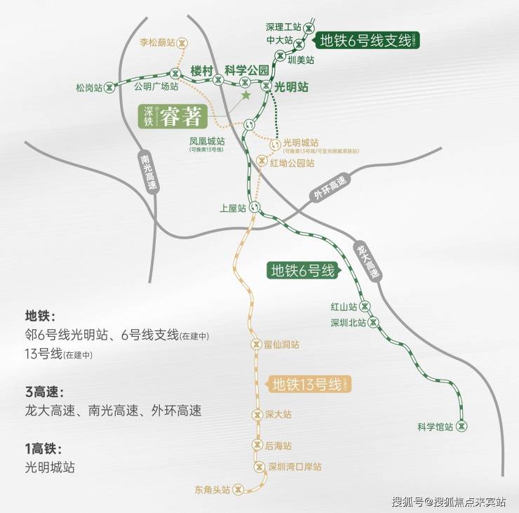 3地铁:邻6号线光明站、6号线支线 (在建中)、13号线 (在建中)