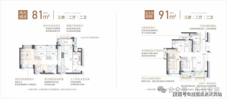 推售:81㎡3 房 2 卫(通透)、91㎡3 房 2 卫(南向 6.25 米大阳台)