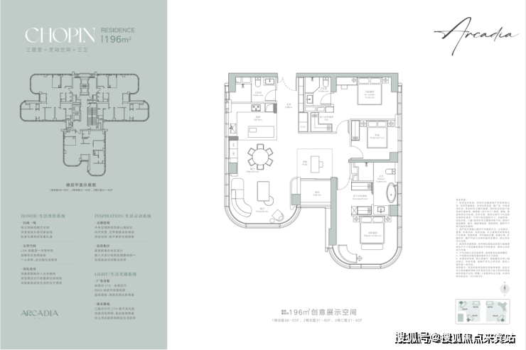 建面约196㎡户型是三居室+灵动空间+三卫的奢阔设计,让生活更加从容且惬意,匹配对生活有追求的商务精英或高净值人群的居住需求。