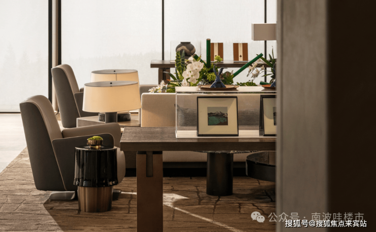 区别于传统的写字楼大堂,更注重企业主的待客之道,和商务的高效性,将呈现人文生态、多元化、有温度的新型辦公,大堂和商务会客厅巧妙结合在一个空间中,营造出商务、舒适的感觉。