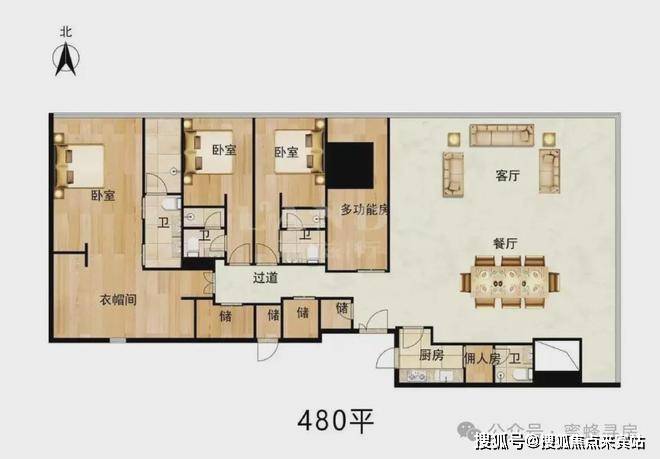 480平:3+1房(三套房)客厅105平,主卧65平奢阔设计。