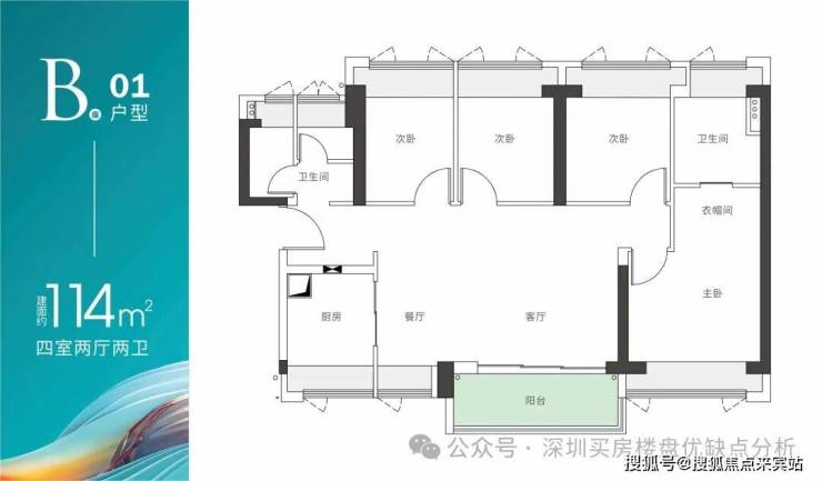 B座01户型-建面约114m² 四房两厅两卫