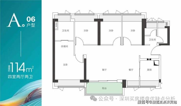 A座06户型-建面约114m² 四房两厅两卫