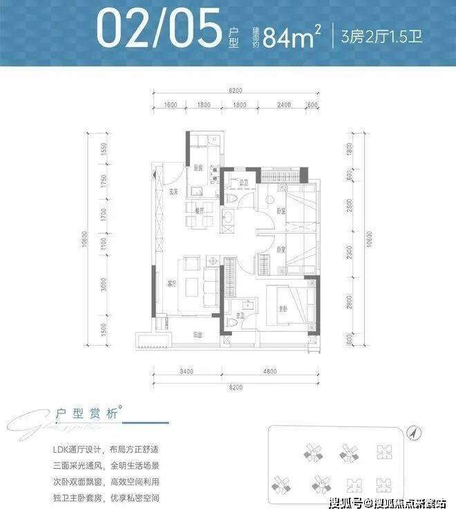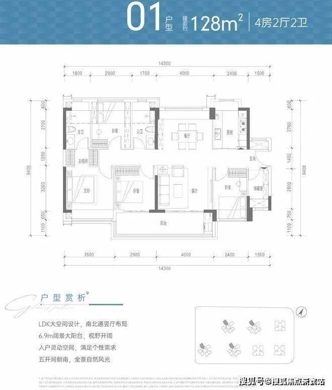 住宅户型:建面约84-128㎡三至四房,住宅使用率约78%(未包含不计容的飘窗、一半阳台)