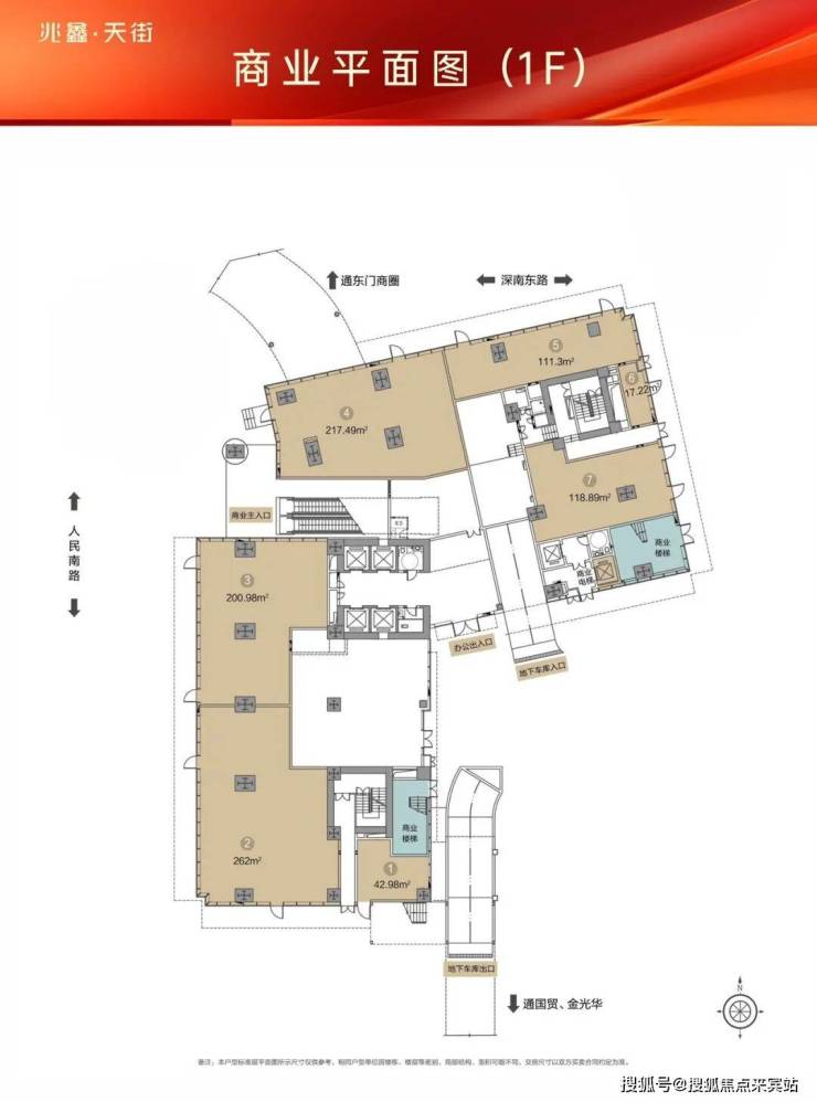 ①【全面临街现铺,360°昭示性】半围合性商业布局,十字路口交汇处,昭示性和通达性强,面朝深南大道和国贸大厦、罗湖口岸港人聚集地,承接海量人流,人潮即钱潮;