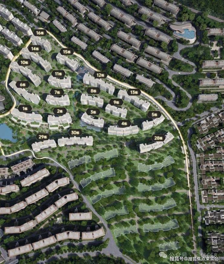 2、生态停车场新养入户,约1100㎡庆典草坪,特色阶梯式水景组团,自带雨林溪岸商业街区,约260㎡泳池会所,森氧剧场自然会客。
