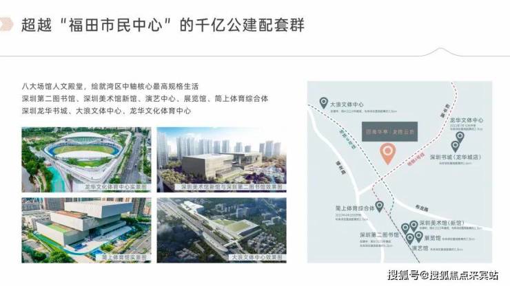 周边涵盖深圳美术馆新馆与深圳市第二图书馆两大深圳新十大文化地标;近享深圳文化馆新馆、简上体育综合体、深圳书城(龙华城)等市级文体项目,打造10分钟文体服务圈,构建对标世界的艺术文化生活区。
