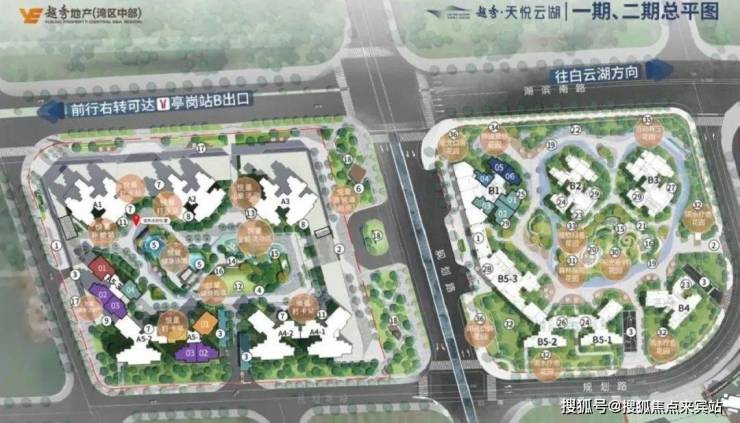 —— 越秀天悦云湖-1期[左]/2期[右] 栋座分布图 ——