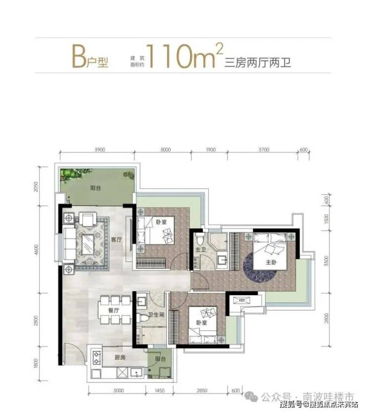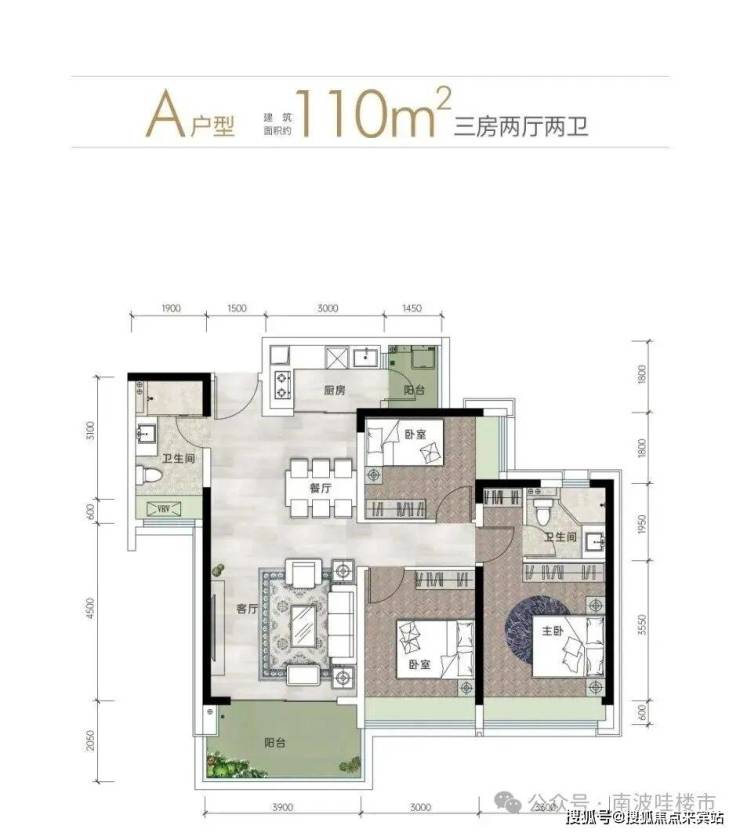 ●110-115㎡3房:双阳台,主卧套间设计,二胎家庭或三代同住无压力,得房率87%-89%(碾压同面积段竞品),不过110平A户型进门就是洗手间,洗手间门口对着餐厅的位置,这个户型需要注意,介意的慎选。