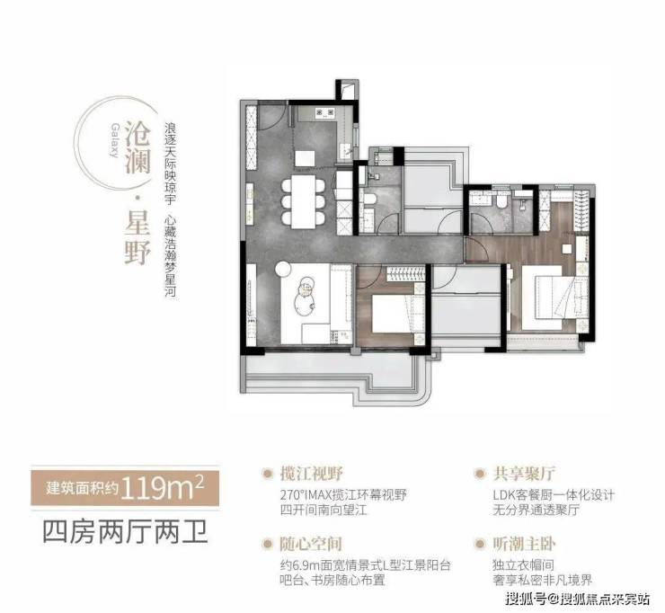 户型涵盖 89 - 126㎡三房至四房。89㎡三房两厅两卫,有特价 534 万起。119㎡和 126㎡四房两厅两卫,朝向东南、西南。户型注入客餐厨一体化、超大面宽阳台、270°主卧落地窗等前卫设计,功能强大。项目整体将于 2024 年 5 月 31 日前交房。