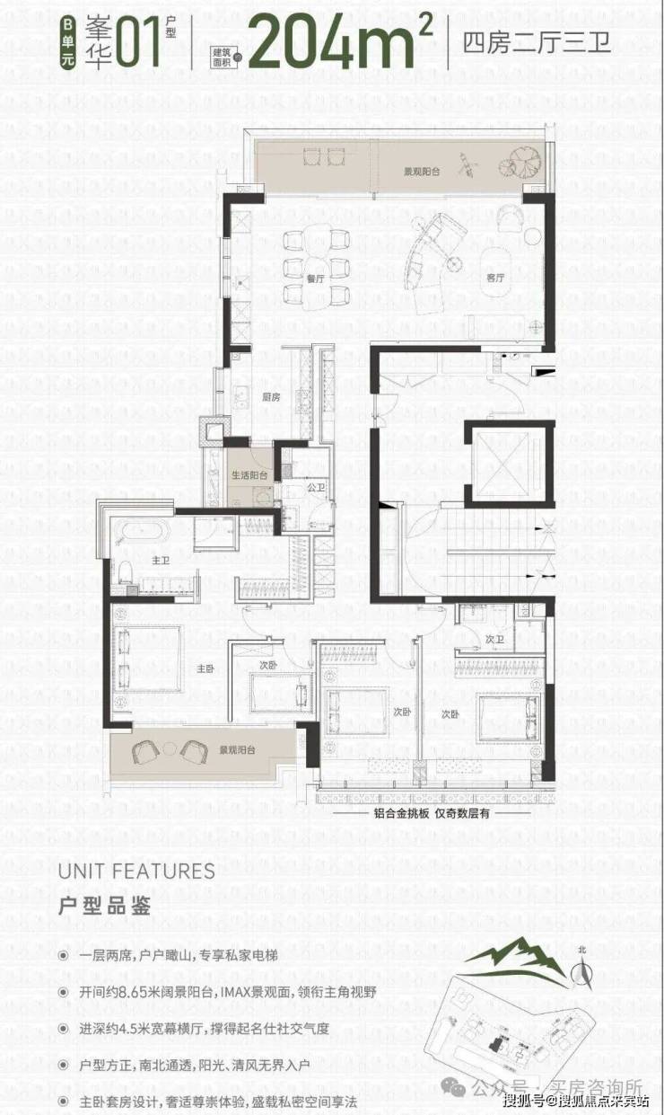 亮点二:一层两席,户户揽山,专享私家电梯入户,独享尊贵品质生活
