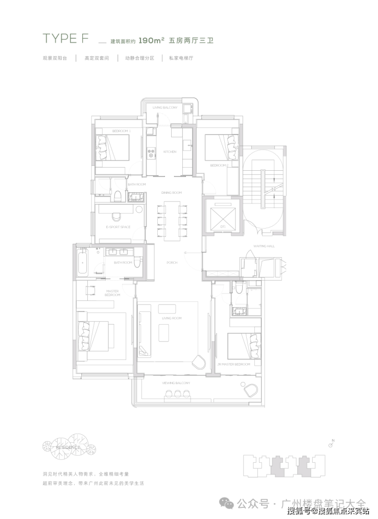 【190㎡户型】观景双阳台-高定双套间-私家电梯厅-双洄游动线