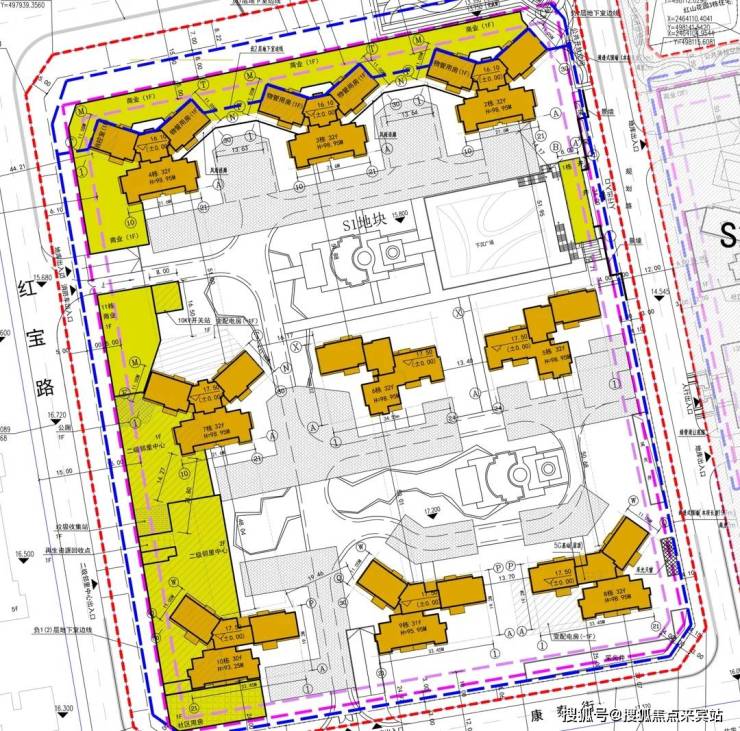 S1地块用地面积34283.41㎡,总计容建筑面积129820.00㎡,绿地率35%,由9栋塔楼、裙房和地下室组成,总停车位1255个。