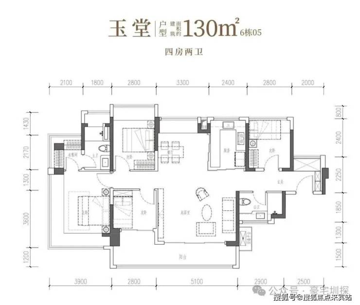 四开间IMAX光幕引景入室,以LDKB家庭聚场升温情感,更以双转角主卧套房,礼献一方休憩殿堂。• 玉堂·建面约130㎡4房2厅2卫:南向四开间,约14.7米IMAX光幕,尺度自成