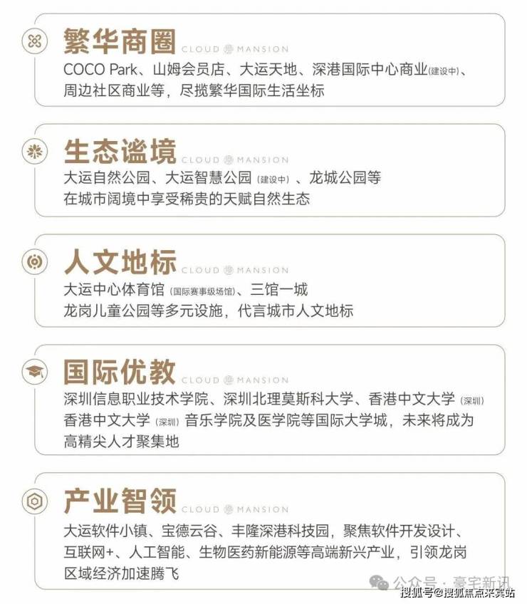 大运新城-深圳东部唯一“城市会客厅”,与前海中心、深圳湾超总、香蜜湖金融街等区域并列深圳六大城市会客厅,汇聚东部大型综合交通枢纽,标杆性文化体育场馆、产业精英商务群、国际大学城等优势,大运新城将成为深圳东部重要发展极点,推动深圳东部增长。