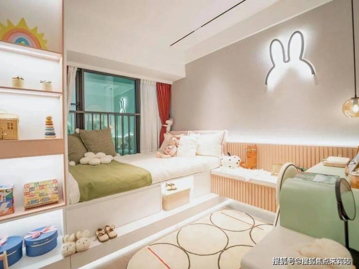 而拾悦城楠园敢于突破常规,既保证了主卧的阔绰空间,也让次卧有足够的尺度满足两个孩子休息、学习、玩乐等需求。